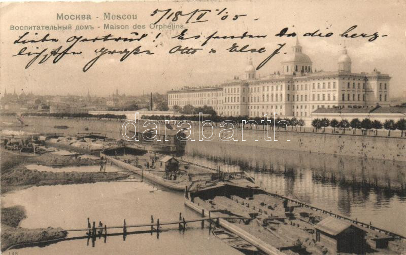 Leírás: Moscow, Moscou; Maison des Orphelins, port, barges (EK)