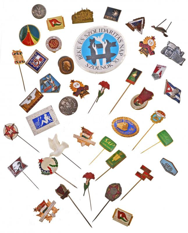 40db-os vegyes jelvény tétel a szocialista időszakból, benne több zománcozott is T:vegyes