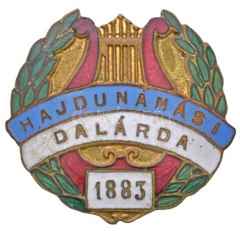 ~1930. "Hajdúnánási Dalárda 1883" zománcozott fém jelvény "Paulik K. B... https://www.darabanth.com/hu/267-Gyorsarveres/267.0/Numizmatika/Falerisztika-Kituntetesek-jelvenyek~400019/7E1930-Hajdunanasi-Dalarda-1883-zomancozott-fem-jelveny-Paulik-K-Budapest-gyartoi-jelz~II1340942