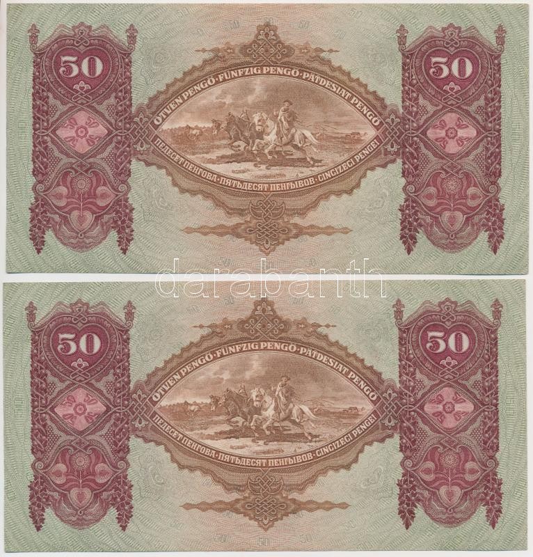 1932. 50P (5x) sorszámkövetők T:I-,II https://www.darabanth.com/hu/267-Gyorsarveres/267.0/Numizmatika/Magyar-bankjegyek~400007/1932-50P-5x-sorszamkovetok-TI-II~II1338965