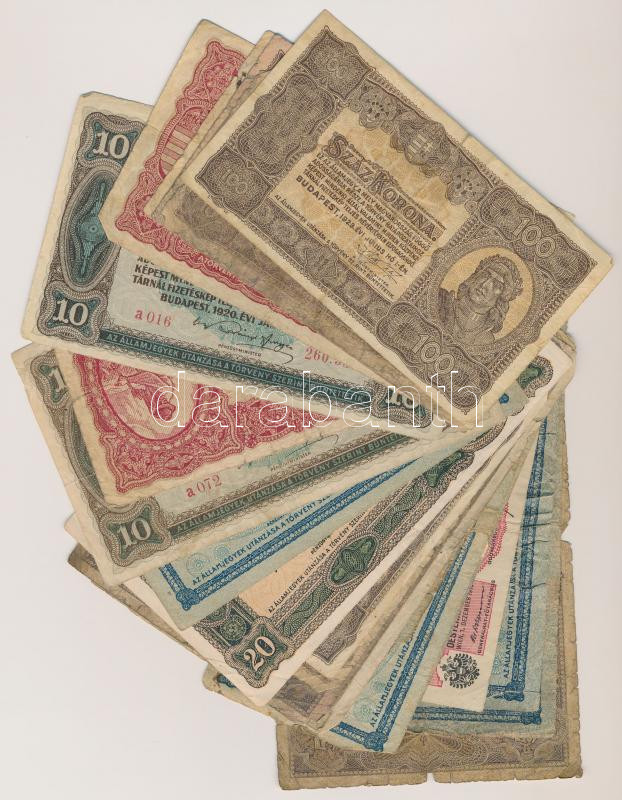 20db-os vegyes korona bankjegy tétel, közte ragasztott is T:III,III-,I... https://www.darabanth.com/hu/267-Gyorsarveres/267.0/Numizmatika/Magyar-bankjegyek~400007/20db-os-vegyes-korona-bankjegy-tetel-kozte-ragasztott-is-TIII-III-IV~II1339481