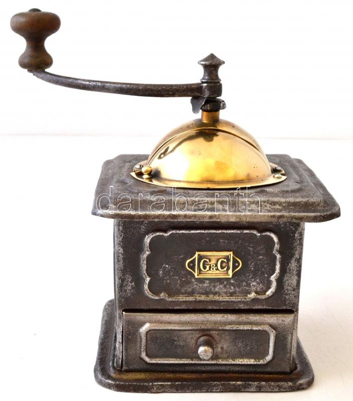 Leírás: G-C, régi kávédaráló, porcelán betétes, jelzett, 21x12x12cm