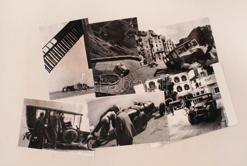 Leírás: Régi autókról készült felvételek és reprodukciók, 6 db modern nagyítás, 10x15 cm és 13x18 cm