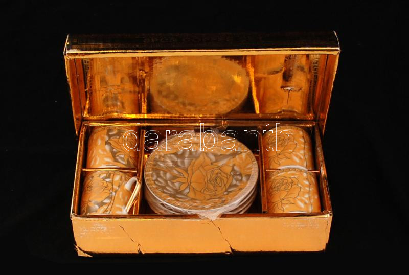 Leírás: Ami aranyozott porcelán kávés csésze és alj, 4 személyes, jelzett, hibátlan, eredeti dobozban, újszerű állapotban