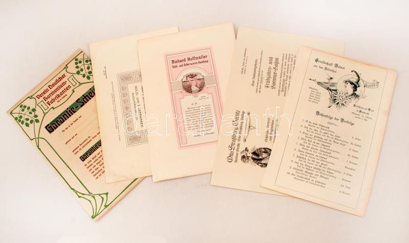 Leírás: cca 1910 7 db különféle német nyelvű szecessziós reklámnyomtatvány, különböző méretben
