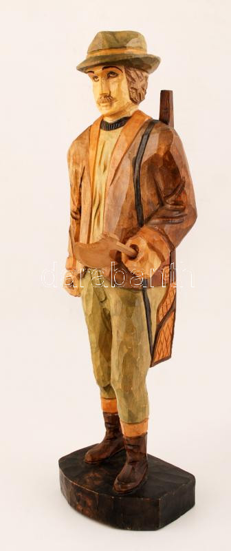 Leírás: Jelzés nélkül: Favágó. Festett faragott fa, kis repedéssel, m:67 vm