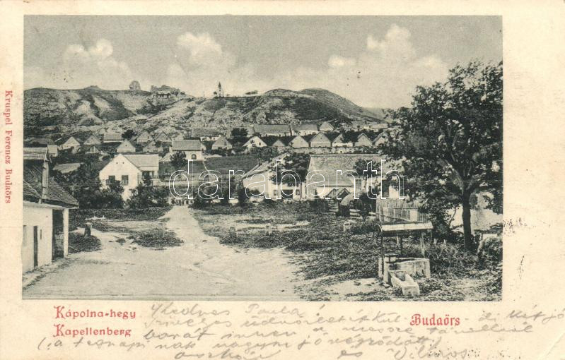 Budaörs, Kápolna-hegy, kiadja Kruspel Ferenc (EK) https://www.darabanth.com/hu/268-Gyorsarveres/268.0/Kepeslapok/Magyarorszag~200005/Budaors-Kapolna-hegy-kiadja-Kruspel-Ferenc-EK~II1349375