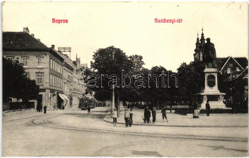 Sopron, Széchenyi tér és szobor, villamos (EK) https://www.darabanth.com/hu/268-Gyorsarveres/268.0/Kepeslapok/Magyarorszag~200005/Sopron-Szechenyi-ter-es-szobor-villamos-EK~II1349629
