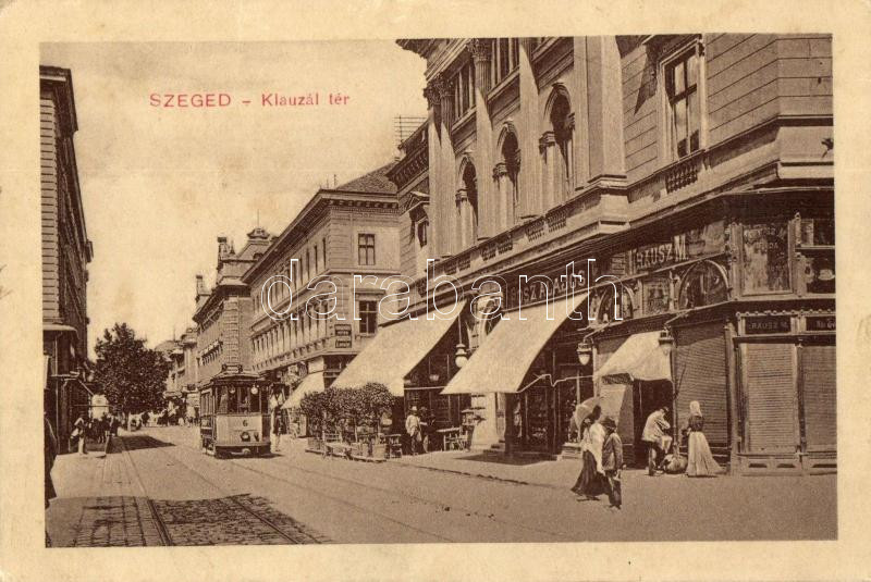 Szeged, Klauzál tér, Posz Alajos és Krausz M. üzlete, villamos (EK) https://www.darabanth.com/hu/268-Gyorsarveres/268.0/Kepeslapok/Magyarorszag~200005/Szeged-Klauzal-ter-Posz-Alajos-es-Krausz-M-uzlete-villamos-EK~II1349466