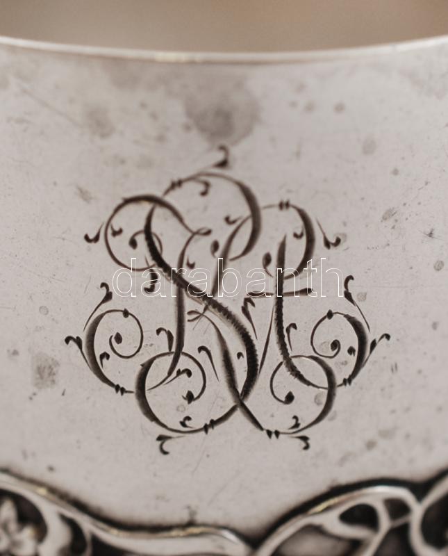 Leírás: Ezüst, monogramos szalvétagyűrű, Ag., nettó: 23,6gr., jelzett, 4cm / Silver, monogrammed napkin rings, Ag, net.. 23.6 grams, marked, 4cm