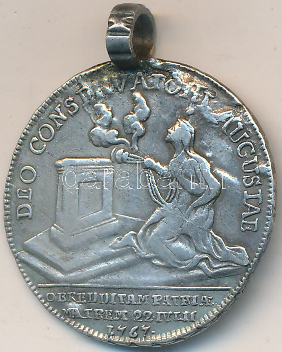 Ausztria 1767. "Mária Terézia" Ag emlékérem, füllel (4,28g/25mm) T:2- forrasztásnyom, ph. Austria 1767. "Maria Theresia" Ag commemorative medal with ear "R. IMP. HU. BOREG M. THERESIA D.G. / DEO CONSERVATORI AUGUSTAE" (4,28g/25mm) C:VF soldering mark, edge error
