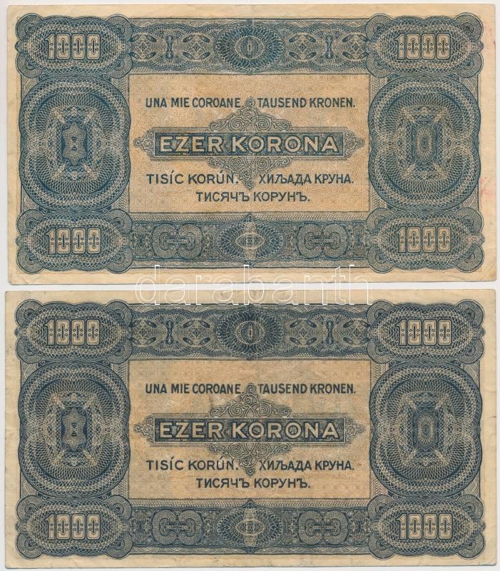 Leírás: 1923. 1000K "8 FILLÉR - NYOLC FILLÉR" felülnyomással + 1923. 1000K "Magyar Pénzjegynyomda Rt. Budapest" T:III,III-