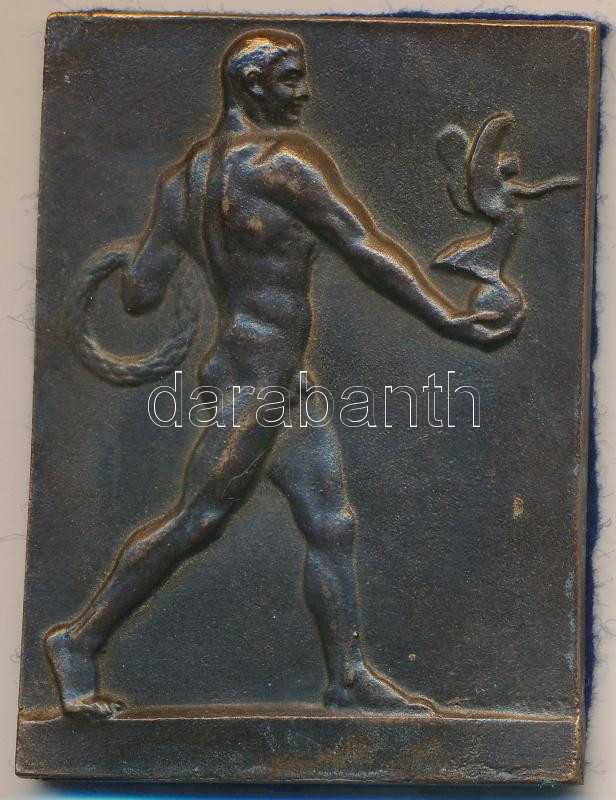 Leírás: DN "Sportoló" egyoldalas Br plakett, hátoldalon textil borítással, olvashatatlan jelzéssel (56x75mm) T:2 apró ph.