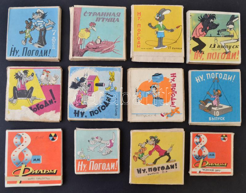 Leírás: cca 1970 "No megállj csak" 8 db 8mm-es rajzfilm eredeti dobozában + 3 db szovjet 8mm-es rajzfilm, összesen 12 db