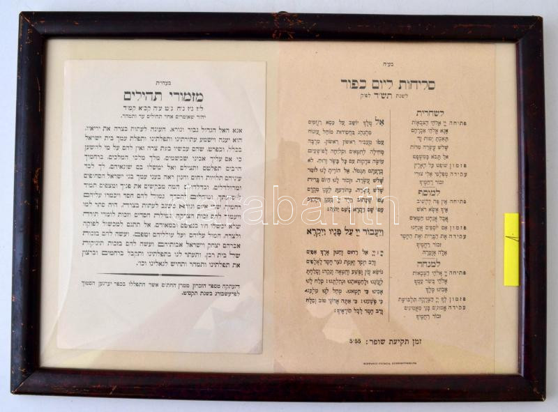 cca 1930 Kunszentmiklós zsinagóga hirdetmény üvegezett keretben. 38x27... https://www.darabanth.com/hu/269-Gyorsarveres/269.0/Festmeny-mutargy-papirregiseg-egyeb/Judaika~26/cca-1930-Kunszentmiklos-zsinagoga-hirdetmeny-uvegezett-keretben-38x27-cm~II1359149