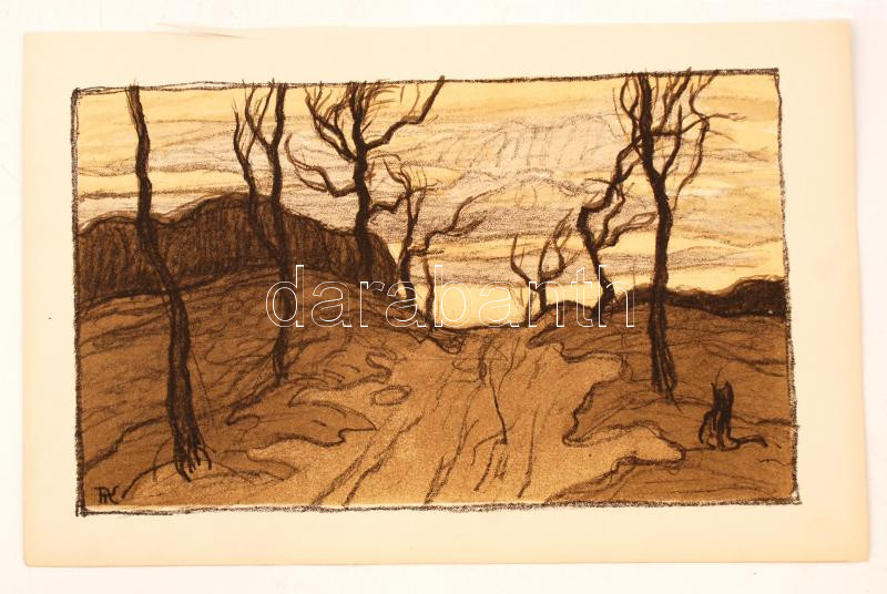 Leírás: Kőrösfői Kriesch Aladár (1863 -1920) : Naplemente (1903). Színes litográfia, papír, jelzett a liton, 14×24 cm