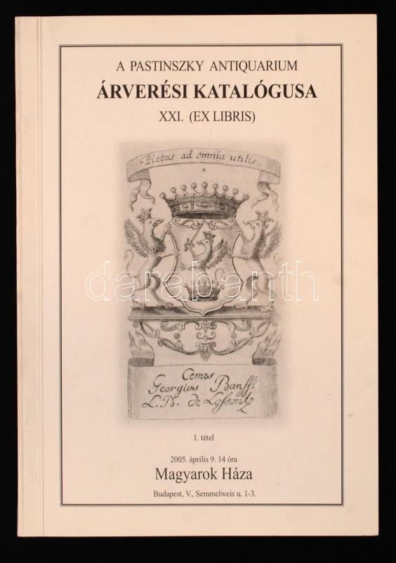 2005 A Pastinszky Antiquarium árverési katalógusa XXI.(Ex libris) https://www.darabanth.com/hu/269-Gyorsarveres/269.0/Festmeny-mutargy-papirregiseg-egyeb/Nyomtatvanyok~30/2005-A-Pastinszky-Antiquarium-arveresi-katalogusa-XXIEx-libris~II1357317