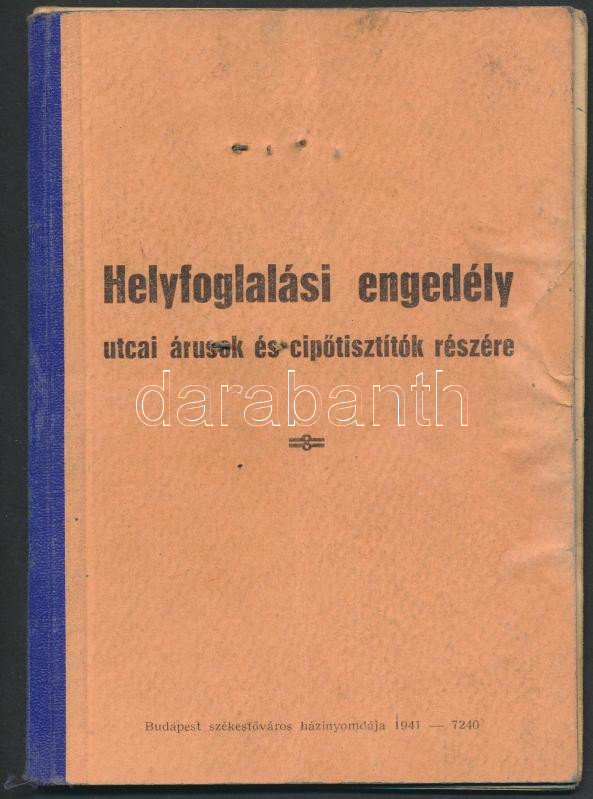 Leírás: 1945 Helyfoglalási engedély, Budapest X. ker. elöljárója, pp.:12, 15x10cm
