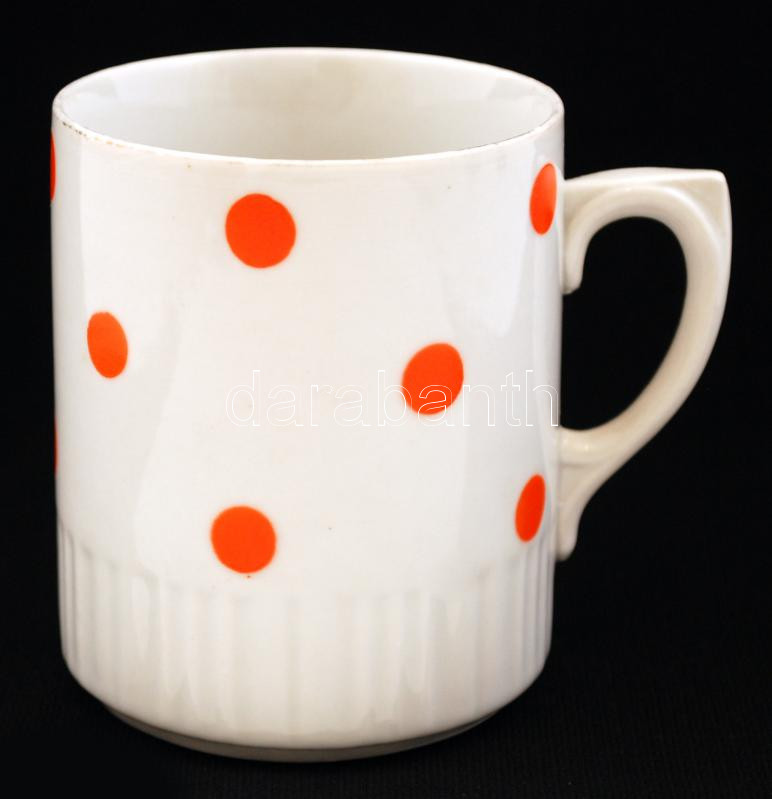 Leírás: Zsolnay pöttyös bögre, kopott, kézzel festett, jelzett, m:9 cm
