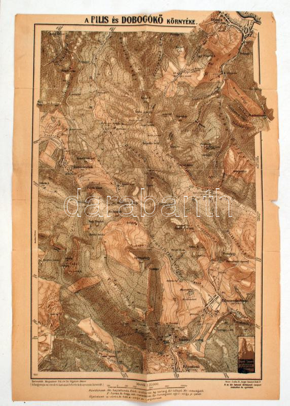 Leírás: 1920 a Pilis és Dobogókő térképe, 1:25000, Turistaság és Alpinizmus, a hajtások mentén szakadásokkal, 31×46 cm