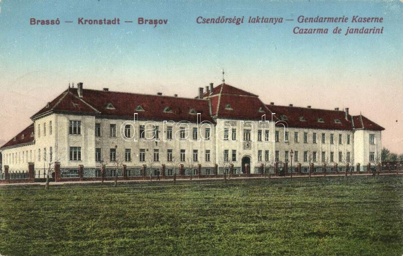 Brassó, Kronstadt; Csendőrlaktanya / Gendarmery barracks https://www.darabanth.com/hu/269-Gyorsarveres/269.0/Kepeslapok/Erdely~300037/Brasso-Kronstadt-Csendorlaktanya-Gendarmery-barracks~II1357023