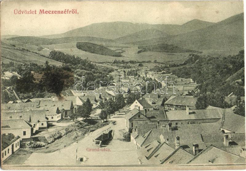 Leírás: Mecenzéf, Metzenzéf, Medzev; Grund utca, kiadja Müller Vince / street (vágot / cut)
