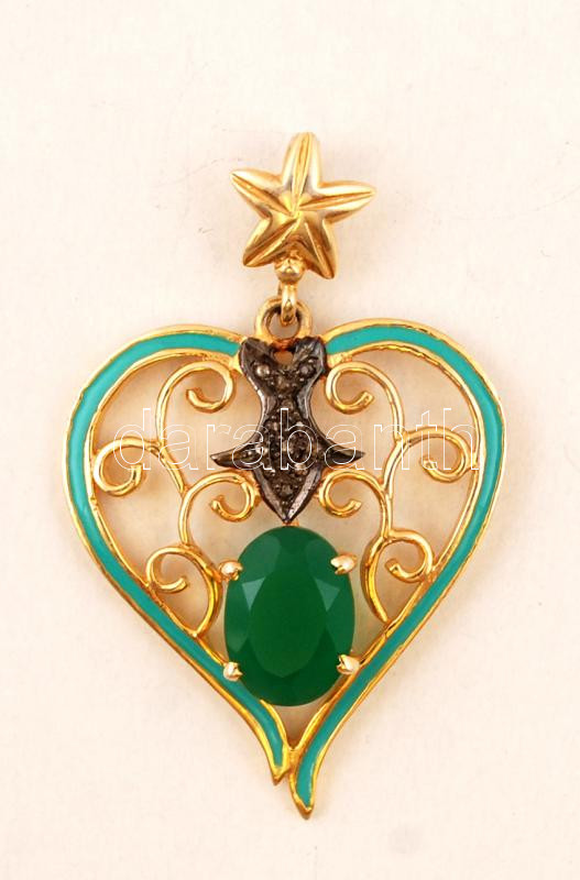 Leírás: Aranyozott ezüst (Ag.) medál kővel és apró gyémántokkal, zománc berakással, bruttó:7 g