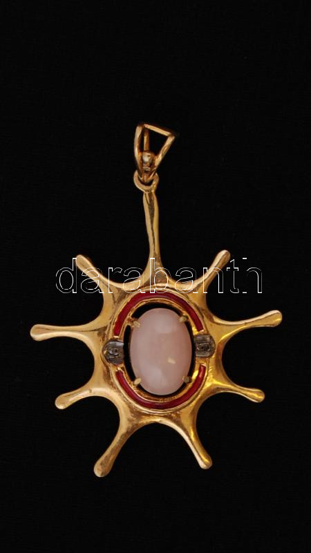 Leírás: Pink oplál medál, aranyozott ezüst (Ag.), apró gyémánt kövekkel, bruttó: 11 g