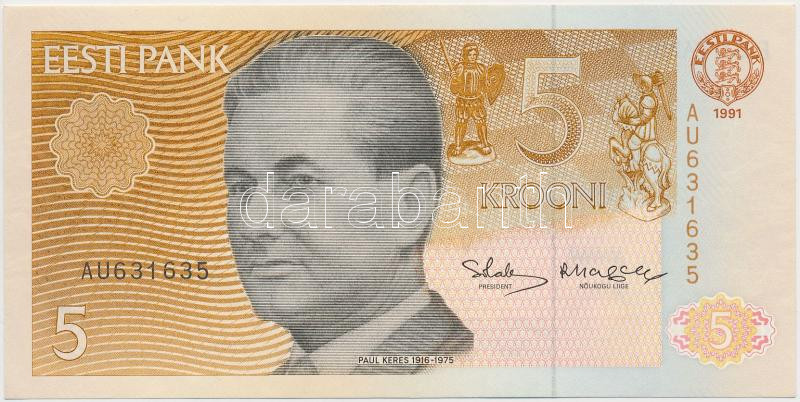 Leírás: Észtország 1991. 5K "Paul Keres" észt sakk nagymester T:I Estonia 1991. 5 Krooni "Paul Keres" Estonian chess grandmaster C:Unc