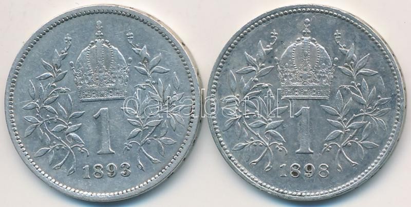 Leírás: Ausztria 1893-1898. 1K Ag "Ferenc József" (2x) T:2,2- patina Austria 1893-1898. 1 Corona Ag "Franz Joseph" (2x) C:XF,VF patina