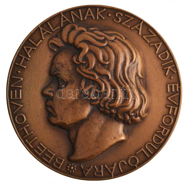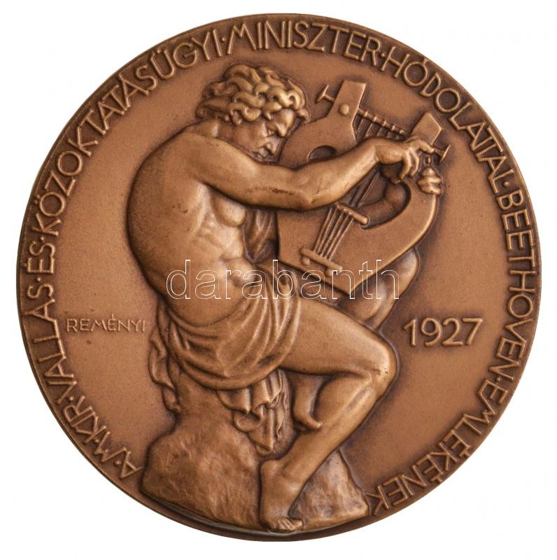 Reményi József (1887-1977) 1927. "Beethoven halálának zzázadik évfordulójára" Br emlékérem. "BEETHOVEN HALÁLÁNAK SZÁZADIK ÉVFORDULÓJÁRA / A M KIR VALLÁS ÉS KÖZOKTATÁSÜGYI MINISZTER HÓDOLATTAL BEETHOVEN EMLÉKÉNEK" (61mm) T:2
