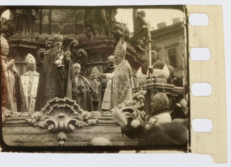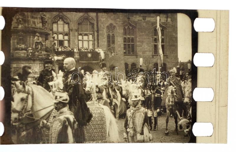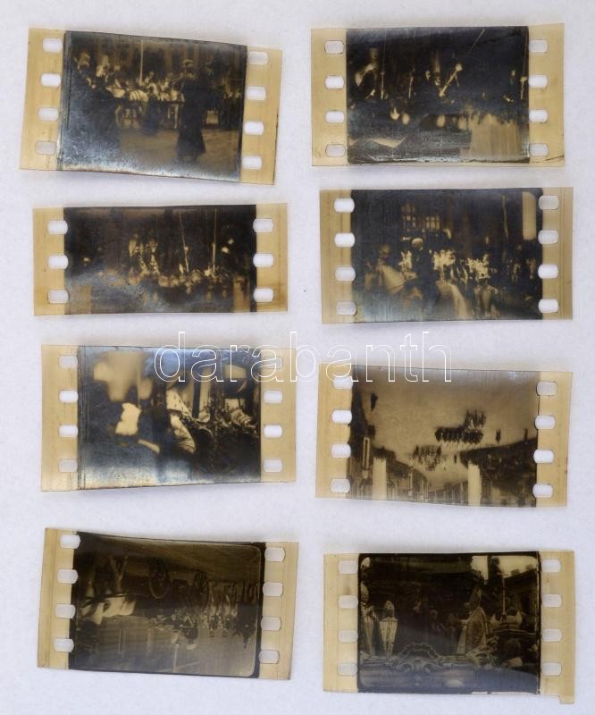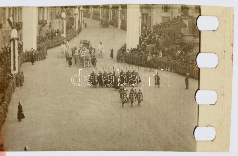 1916 IV. Károly koronázásán készült 8 db korabeli kisméretű fotónegatív, rajta az uralkodó, felesége Zita királyné hintóban, főurak, 2x3,5 cm / 1916 The coronation of Charles IV of Hungary, 8 original photo negatives, 2x3,5 cm