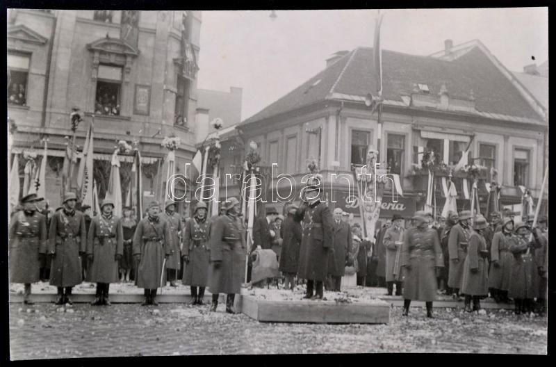 1938. november 11. Horthy Miklós bevonulása Kassára, dr. Bónis László rendőrfogalmazó felvételei, 21 db vintage negatív (4,5x6 cm) + 1 db későbbi nagyítás, 9x14 cm