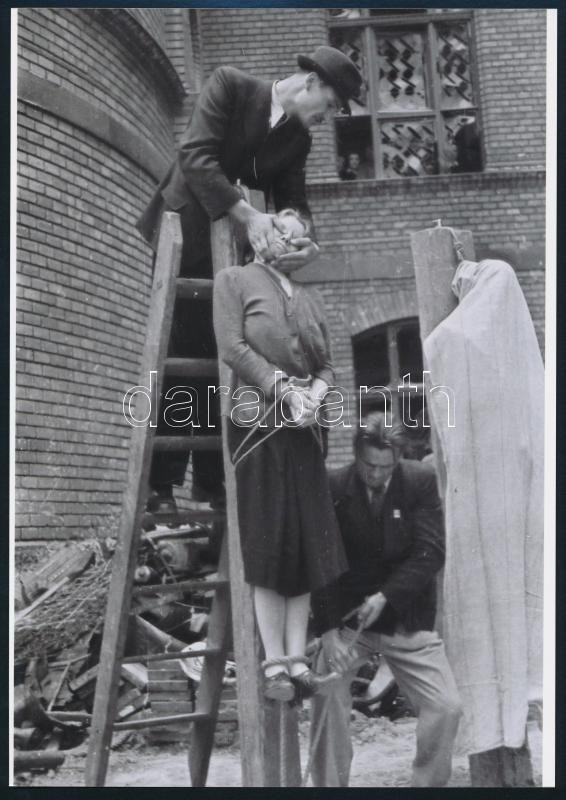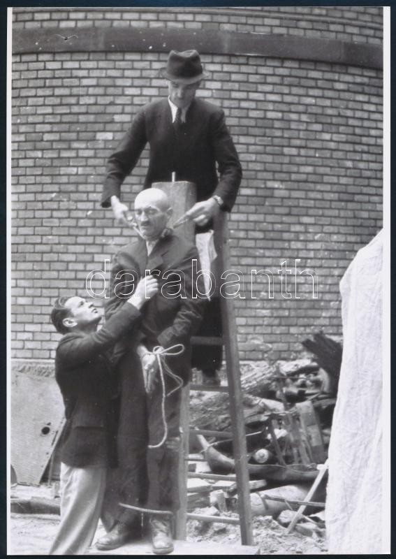 1945 Budapest, háborús bűnösök nyilvános kivégzése, 3 db vintage negatívról készített mai nagyítás, 25x18 cm / Budapest, execution, 3 modern copies of vintage photos, 25x18 cm