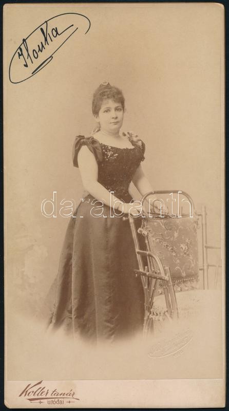 Leírás: cca 1899 Győry Ilona (1868-1926) tanítónő, író, műfordító, keményhátú fotó, Koller Károly tanár utódai műterméből, 21x11,5 cm