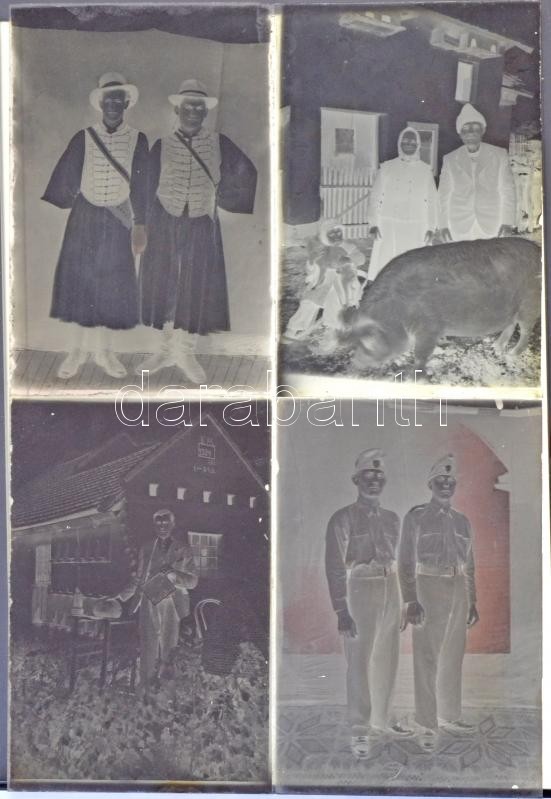 Leírás: cca 1940 Hajdú János csongrádi fényképész által készített 13 db szabadon felhasználható, vintage üveglemez negatív, 9x14 cm