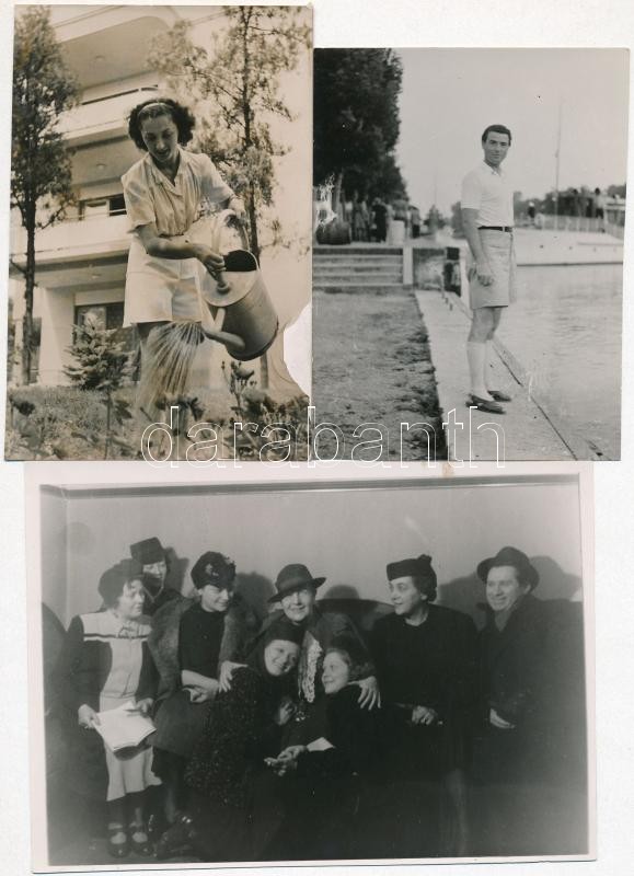 cca 1943 Vaszary Piroska, Lukács Margit, Sárdy János, Hunyady Sándor, Fedák Sári színészek, 5 db privát környezetben készült vintage fotó, 12x9 cm és 18x12 cm között