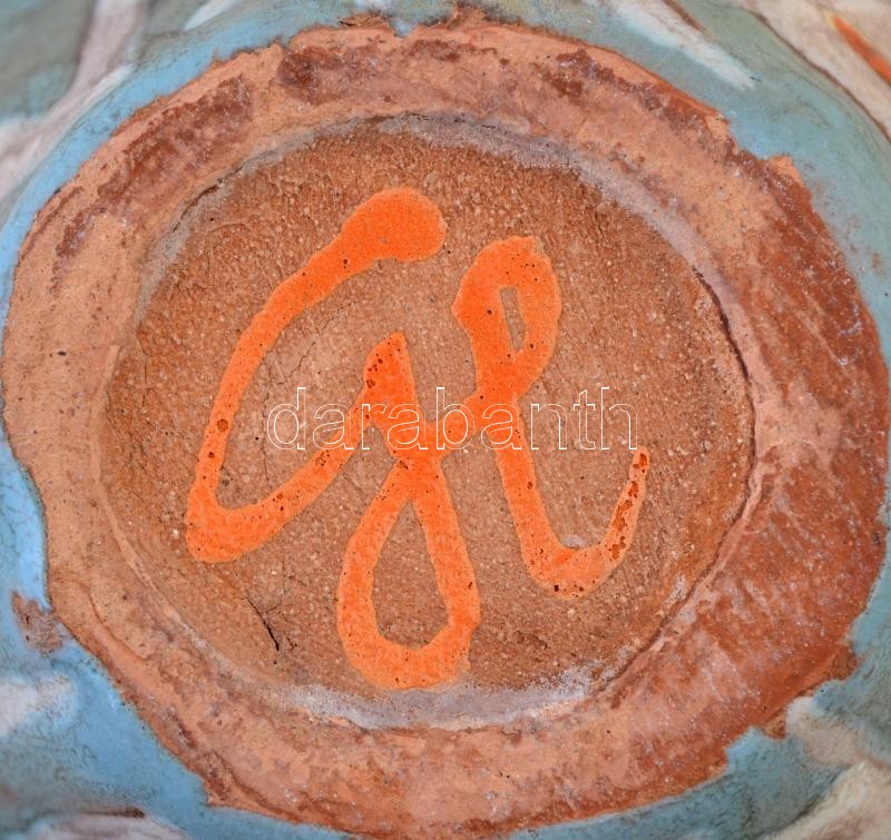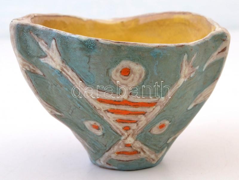 Leírás: Gorka Lívia (1925-2011): Kaktuszos váza, festett, mázas kerámia, jelzett, hibátlan, m:9 cm, d:12 cm