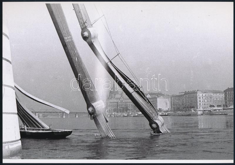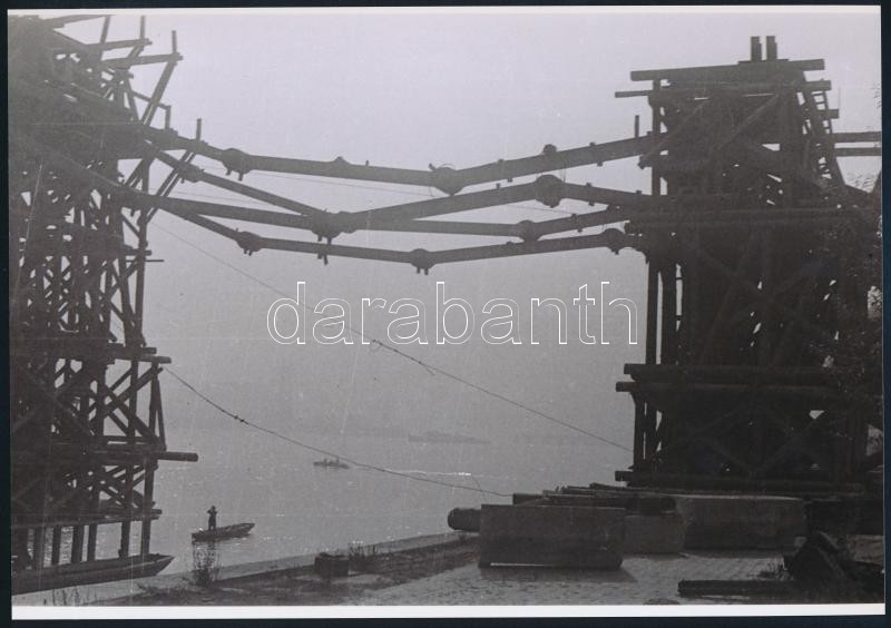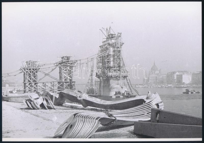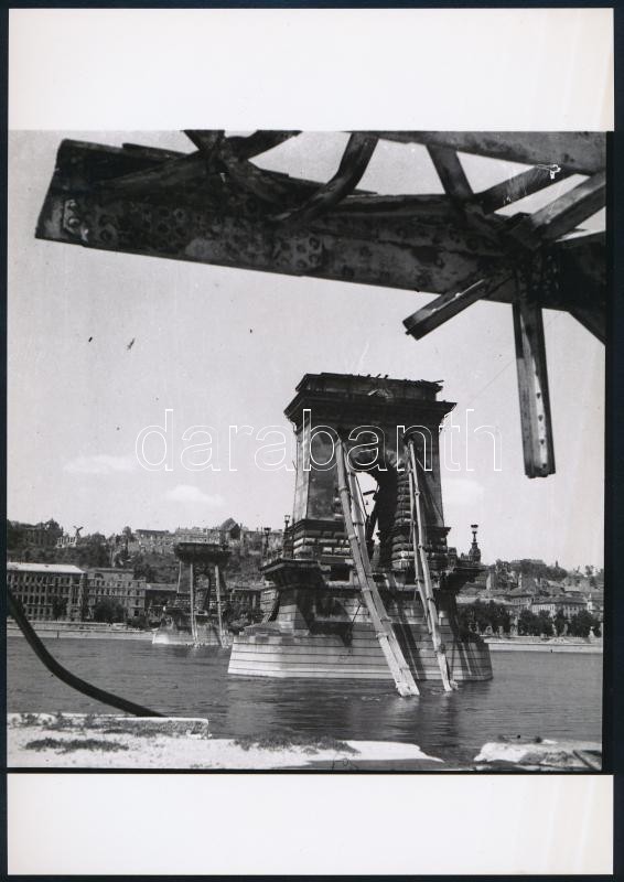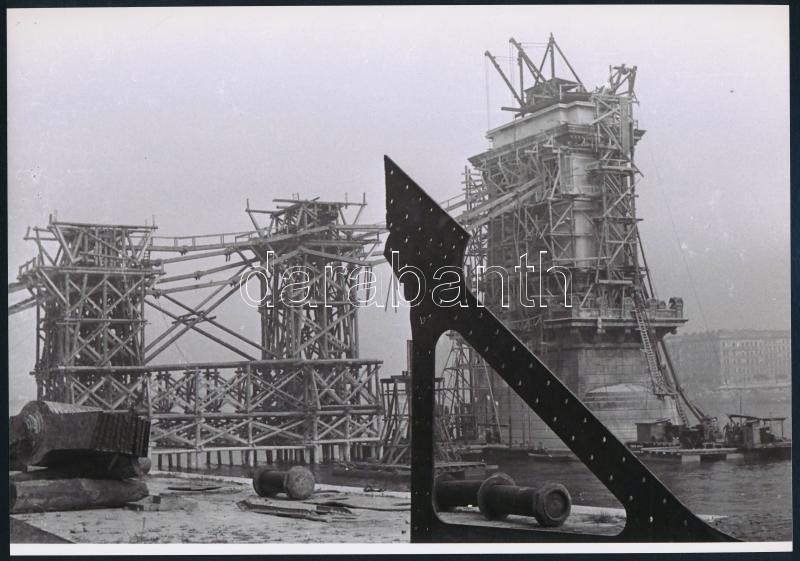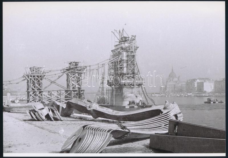 cca 1947 Budapest, Lánchíd, 9 db vintage negatívról készült mai nagyítás, 18x25 cm, + hozzáadva 8 db vintage negatívot is (pozitívok és negatívok között csak részben van átfedés), 24x36 mm