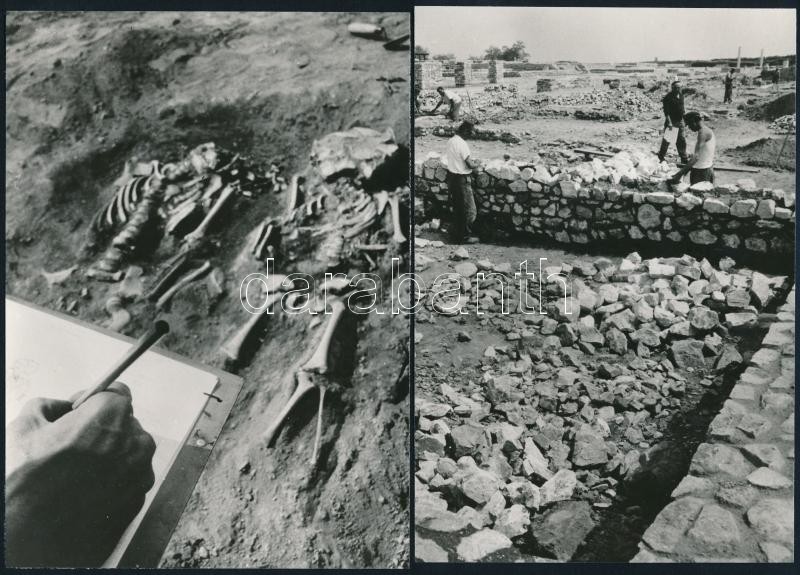 Leírás: cca 1972 és 1976 Tác, Gorsium - az ásatások idején és az előadások idején, 3 db vintage fotó, 16x11 cm és 16x23,5 cm