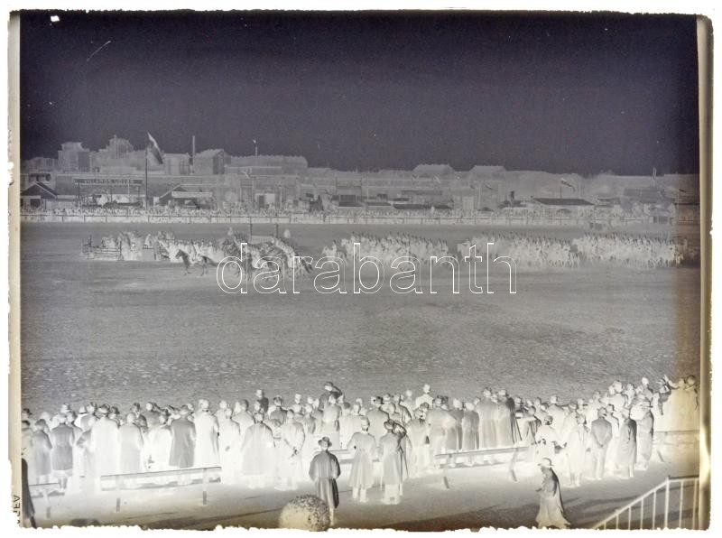 Leírás: cca 1920 Budapest, katonai parádé a Vérmezőn, vintage üveglemez negatív, 9x12 cm