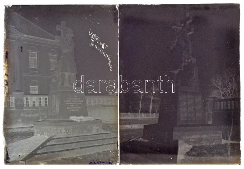 cca 1935 Jánoshida, katonai emlékmű, 2 db szabadon felhasználható vintage üveglemez negatív, Lőcsei Árpád (?-?) kecskeméti vándorfényképész hagyatékából, 13x9 cm