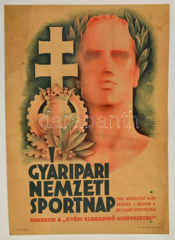 1942 Légrády Sándor (1906-1987): Gyáripari Nemzeti Sportnap plakát, re... https://www.darabanth.com/hu/27-Nagyaukcio/27.1/Festmeny-mutargy-papirregiseg-egyeb/Plakat~10888/1942-Legrady-Sandor-1906-1987-Gyaripari-Nemzeti-Sportnap-plakat-restauralt-83-5x59-cm~II1569661