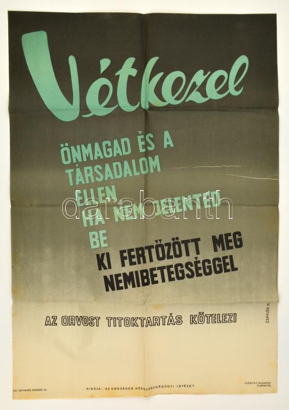 cca 1947 Vétkezel... Nemi betegségek bejelentésére felszólító plakát. ... https://www.darabanth.com/hu/27-Nagyaukcio/27.1/Festmeny-mutargy-papirregiseg-egyeb/Plakat~10888/cca-1947-Vetkezel-Nemi-betegsegek-bejelentesere-felszolito-plakat-Csavlek-Marta-alkota~II1584164
