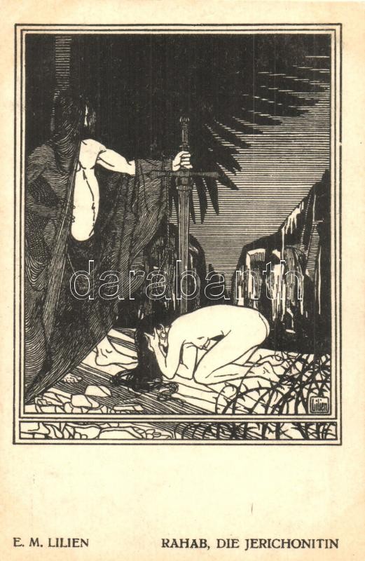Rahab, die Jerichonitin. Serie Juda Gesänge von Börries, Freiherrn von Münchhausen. Verlag B. Harz / Jewish art postcard, Judaica s: Ephraim Moses Lilien