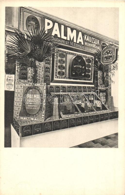 Budapest VI. Palma Kaucsuk Részvénytársaság kirakata. Eötvös utca 35. https://www.darabanth.com/hu/27-Nagyaukcio/27.1/Kepeslapok/Magyarorszag~10794/Budapest-VI-Palma-Kaucsuk-Reszvenytarsasag-kirakata-Eotvos-utca-35~II1587016