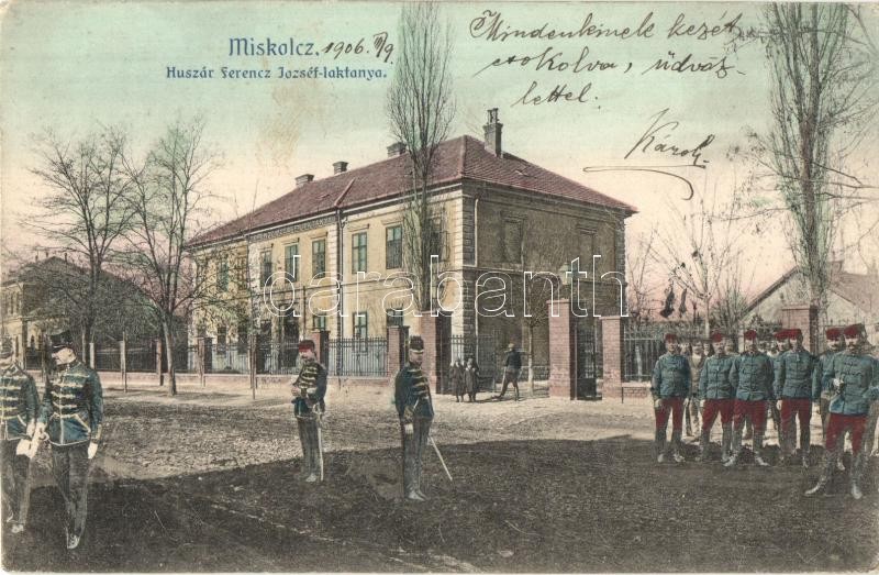Miskolc, Huszár Ferenc József laktanya. Montázslap katonákkal https://www.darabanth.com/hu/27-Nagyaukcio/27.1/Kepeslapok/Magyarorszag~10794/Miskolc-Huszar-Ferenc-Jozsef-laktanya-Montazslap-katonakkal~II1583656