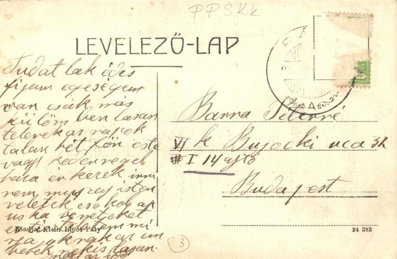 Leírás: Páty, Kossuth utca, Református templom, Klein Lipót vegyeskereskedése és saját kiadása (EK)