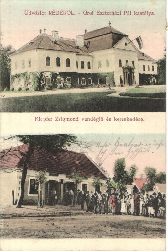 Leírás: Réde, Gróf Eszterházi Pál kastélya, Klopfer Zsigmond vendéglője, kereskedése és saját kiadása