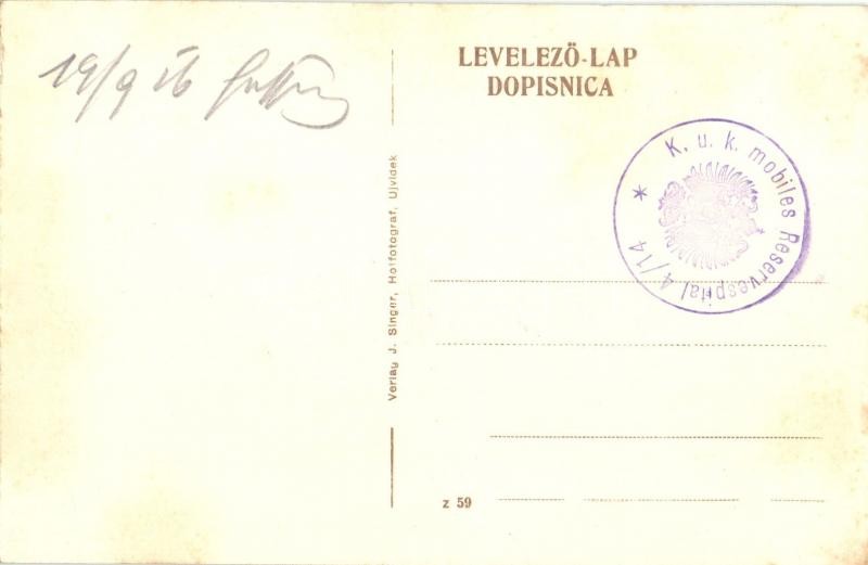Leírás: 1916 Újvidék, Kamanc, Kamenica, Sremska Kamenica; Hősök szobra felavatása / inauguration of the heroes monument + K.u.K. mobiles Reservespital 4/14.